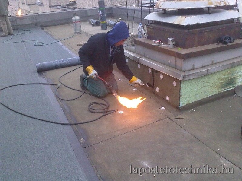 A régi tetőn van legalább egy réteg szigetelés. Ezt általában nem kell felszedni, alapnak nem rossz, de perforálni kell mindenféleképen.